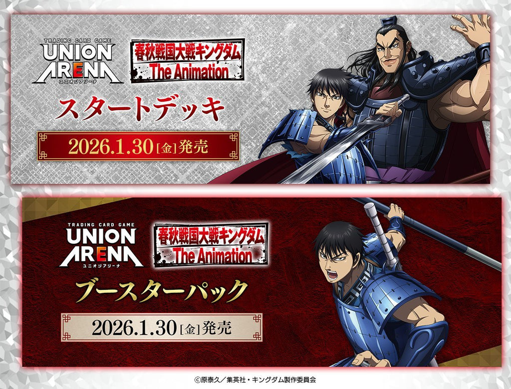 L’univers épique de Kingdom rejoint le jeu de cartes Union Arena ! Retrouvez Shin, Kyoukai et d’autres personnages phares dans ce set riche en batailles. Chaque boîte contient 16 paquets de 8 cartes.