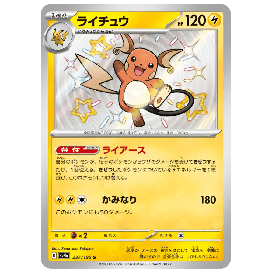 Pokémon Card Raichu 237/190 AR Scarlet & Violet sv4a Shiny Treasure Ex