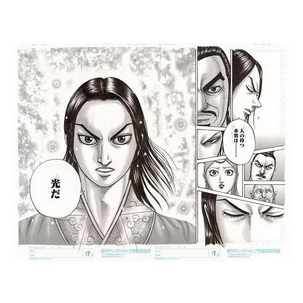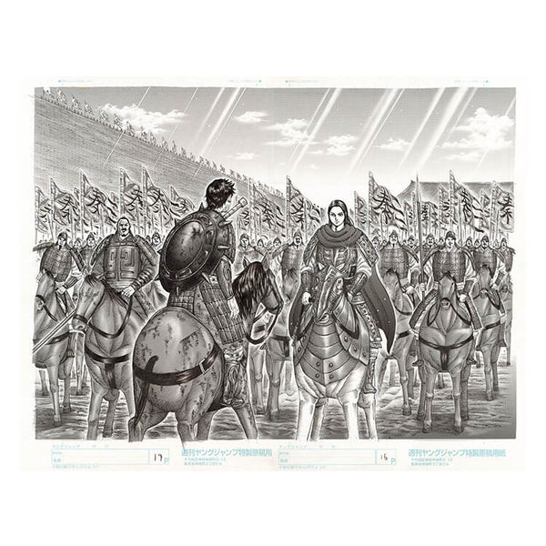 "Kingdom" es un manga histórico de Yasuhisa Hara, serializado en Weekly Young Jump con una frecuencia semanal. Propiedad de Shūeisha, se desarrolla durante el período de los Reinos Combatientes de la antigua China y sigue las aventuras de Shin y Ei Sei, quienes sueñan con unificar China. Conocida por sus escenas de batalla épicas y su narrativa cautivadora, ha sido adaptada a una serie animada y películas de acción real.