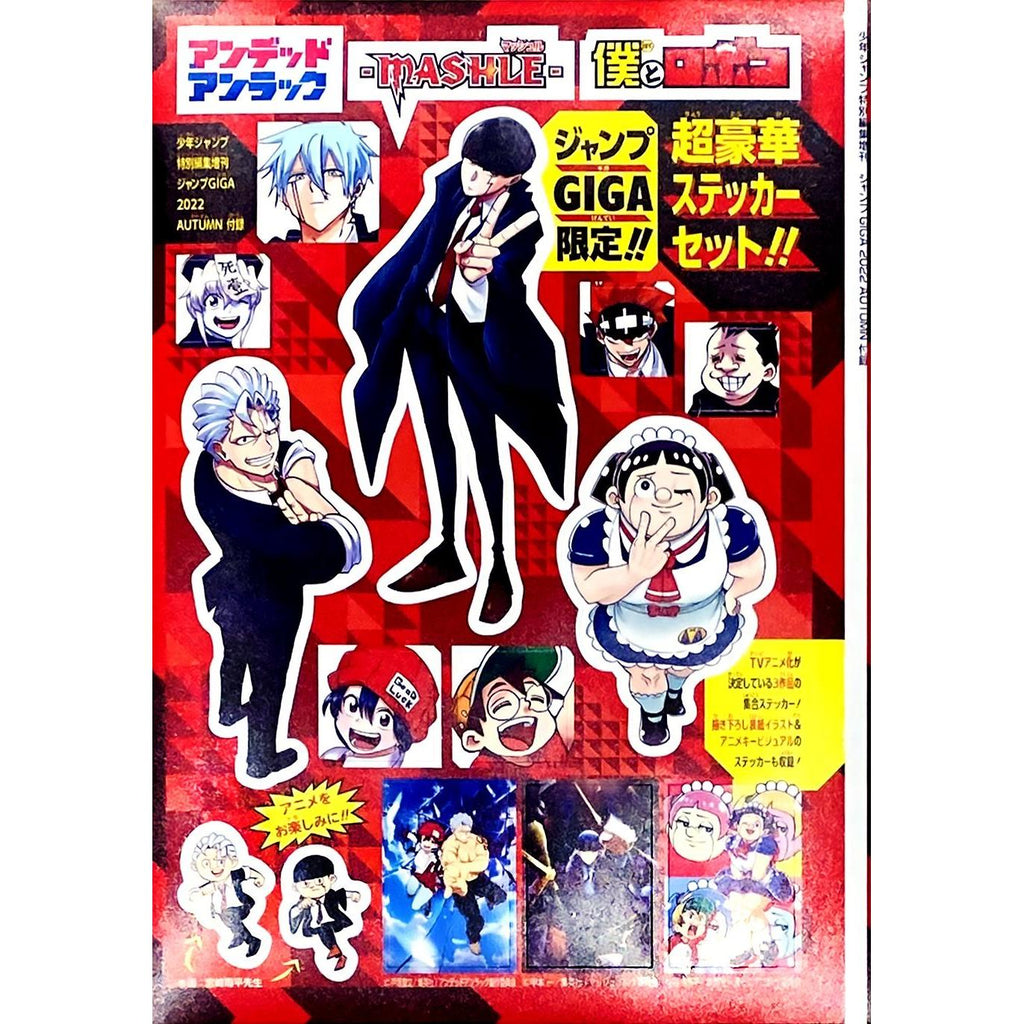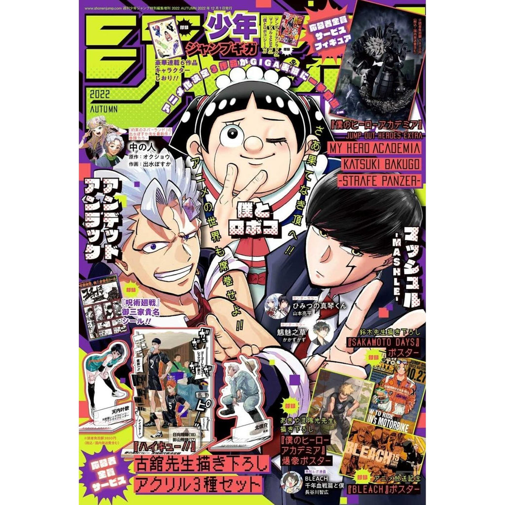 Jump Giga Otoño, 2022 (carteles de Bleach, My Hero Academia, Sakamoto Days + pegatinas de Jujutsu Kaisen, Mashle + marcapáginas JUMP)